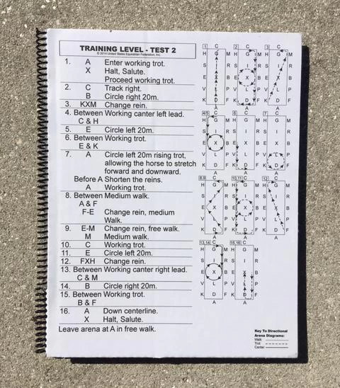 Larger size 8.5 x 11 dressage test booklet with big print. Extra large print is good for those who have difficulty seeing regular print sizes. Laminated booklet includes 2023 introductory through 4th level tests and arena diagrams. Back pocket for additional tests and notes.Â