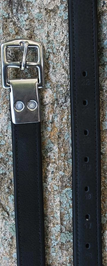 The Black Oak Riveted Calf Lined Leathers feature calf skin leather wrapped over a webbed core for a tactile, yet durable leather. These leathers feature 22 holes placed 1” apart. The Nylon webbing helps these leathers from stretching and they are finished with a riveted buckle.