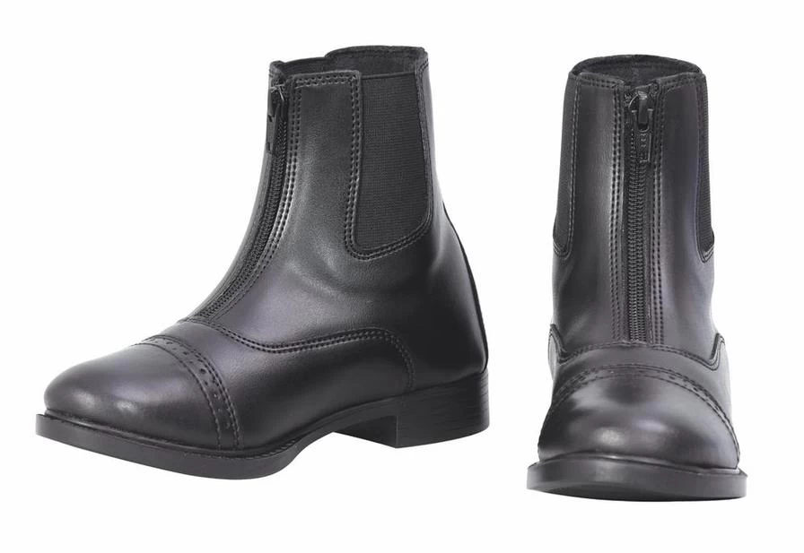 We took our best-selling Tuffrider Starter Boot and designed it with a thinner sole to allow for a better feel of the stirrup. Perfect for children who are just getting started in the world of riding, so they feel more secure. The TuffRider Children’s Starter Lite Front Zip Paddock Boots are equipped with elastic side gussets, spur rests, front zippers, rubber outsoles, and traditional punched toe caps. Although they may feel lighter, they are still durable and water-resistant as any of our other synthetic paddock boot styles
