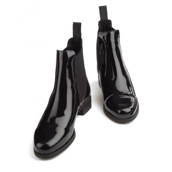 These traditional patent leather jods really show off style. Equipped with elastic sides and rubber gripper soles for stability.