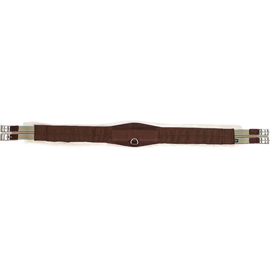 Features ventilated Neoprene liner with White Fleece Edge that looks like a show girth with the added benefit of Non-Slip neoprene lining and a Gel Pad to cushion the sternum. Center D-Ring for training aid attachment. Liner removes for washing.