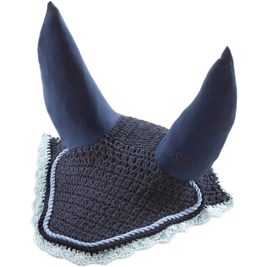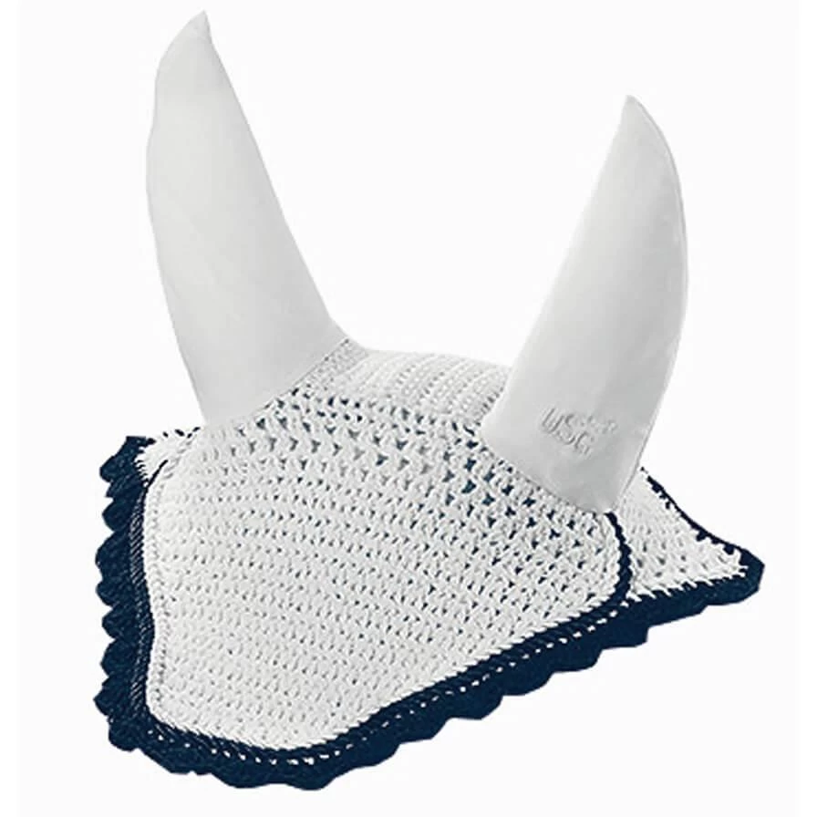 The United Sportproducts Germany (USG) Fly Veils are made of 100 % cotton crochet with Lycra ears and have an elegant double rope piping accent. Available in a variety of attractive color combinations. The USG Fly Veils match perfectly with USG Saddle Pads.