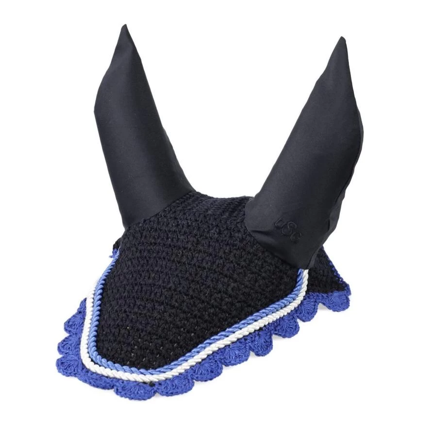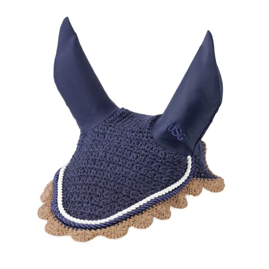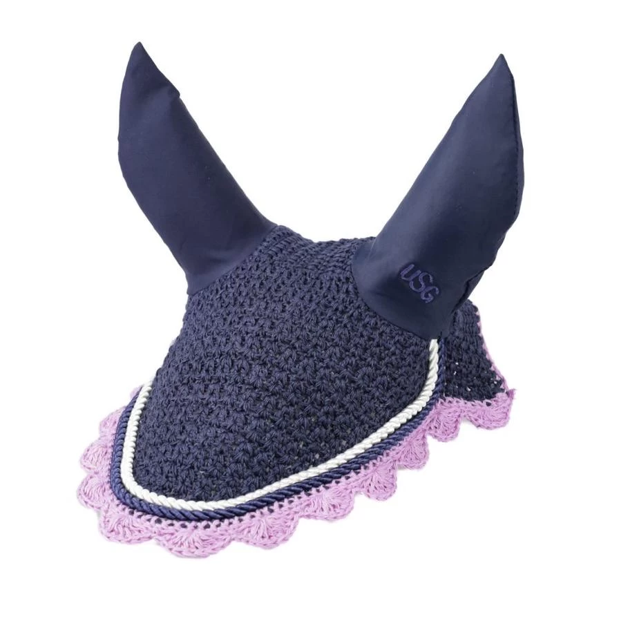 The United Sportproducts Germany (USG) Fly Veils are made of 100 % cotton crochet with Lycra ears and have an elegant double rope piping accent. Available in a variety of attractive color combinations. The USG Fly Veils match perfectly with USG Saddle Pads.