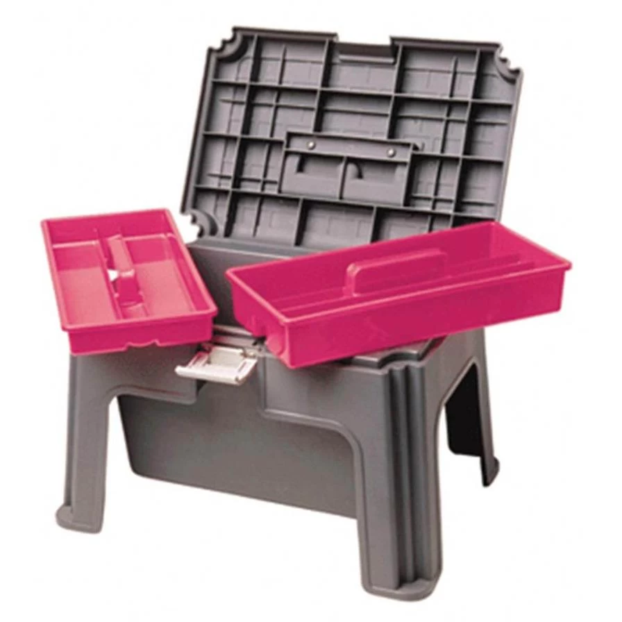 A Grooming and Mounting Stool combined with a handy storage tote. This light and durable step will support up to 300 lbs. Great for barn, trailer or stable. Comes with two pull out storage trays. 12″ H x 12″ W x 17″ L.