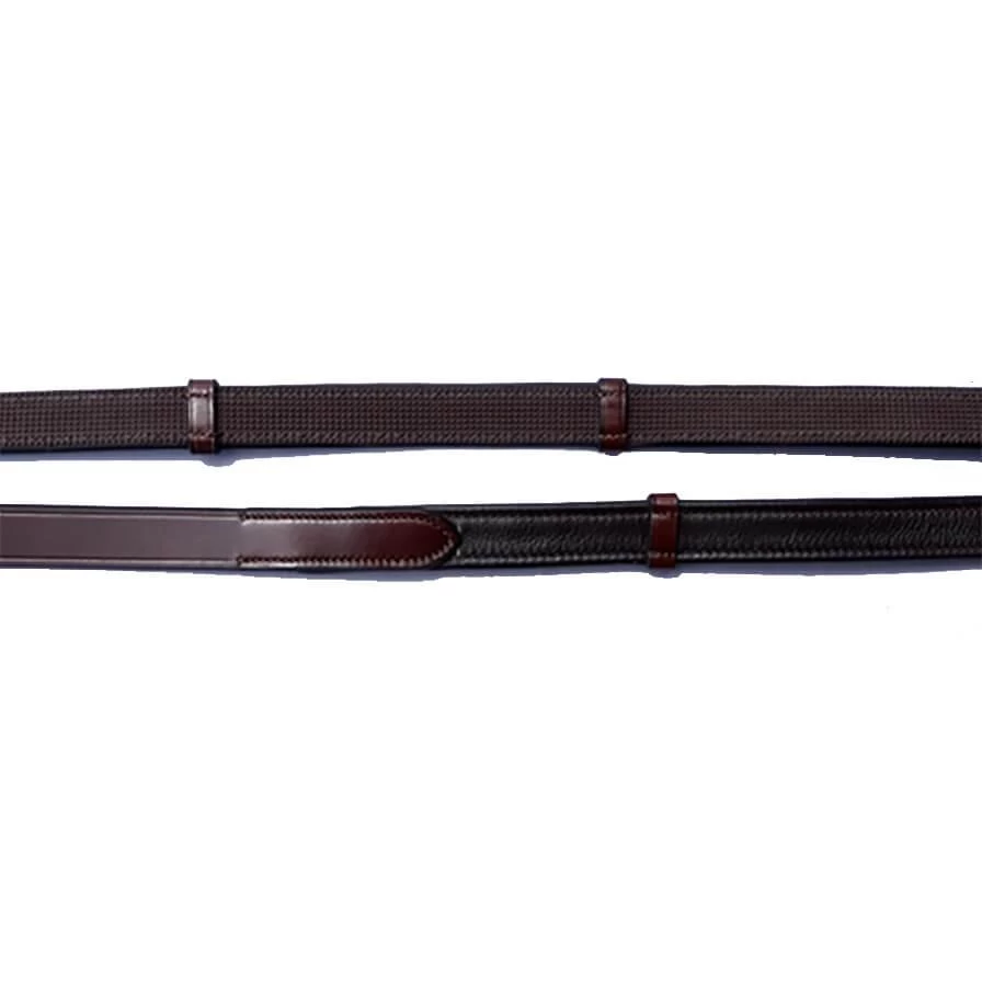 The 5/8″ Soft Grip Reins are a fusion of our Easy Grip and Calf Lined Reins. The Soft Grip Reins are rubber lined, calf skin reins with stops. Supple and easy to hold, with extra grip. The stops are 4 ½” apart, from inside edge to inside edge. The stops begin about 13” from the buckle in the middle and end about 20” from the bit end of the reins