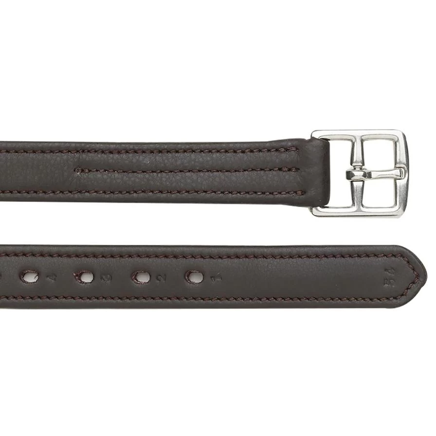 These luxurious non-stretch leathers are made of soft and supple leather with a nylon core to prevent stretching. Special flat buckle reduces bulk under the leg.
