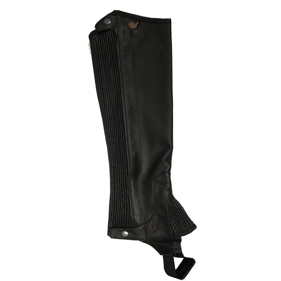 Premium top grain leather with stretch panels for closer fit and snap closures on top and bottom.