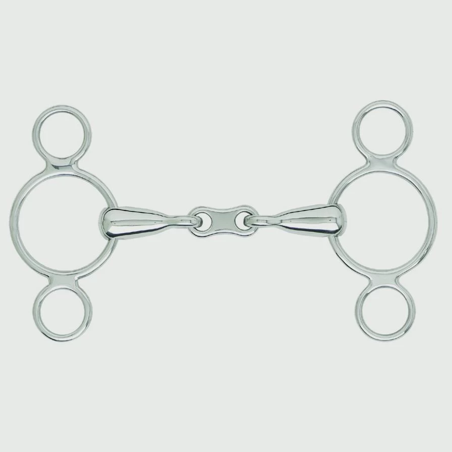 Each side of the bit is perfectly balanced to assure total comfort and response. Lost wax cast and hand polished from the highest grade of 18/8 Stainless Steel. Lifetime guarantee against rust. Features pony-sized cheeks for size 4.5″