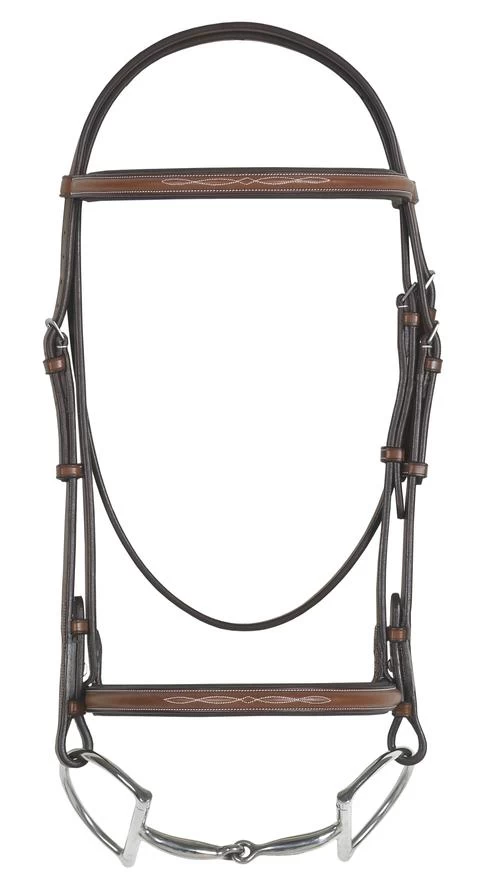 Competition quality fancy stitched raised padded bridle in hand finished leather with impeccable details and performance. Laced reins included.