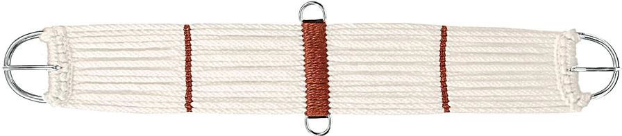 15-Strand white rayon cinch with wrapped nylon center and cross bars, 3″ Nickel-plated straight pull buckles and 1″ nickel-plated dees.