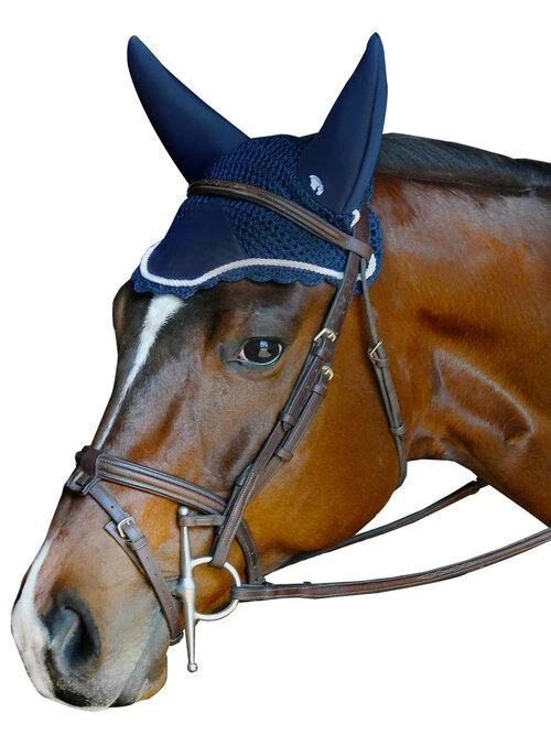 Other details include: hand knit cap, scalloped edge, a white contrasting cord, logo on the left ear. and a self fabric center piece for ease of customizing with our own embroidery. Reducing the sound will naturally calm your horse and allow them to be more focused and perform better. Great for competition, trail riding, shipping or anytime you want a calm, relaxed and more focused horse that also will not be bothered by the bugs