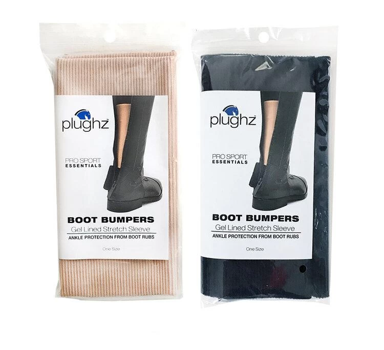 Plughz Boot Bumpers are an elastic flexible gel lined sleeves that is pulled up over your ankle to provide protection from rubs and pressures in riding boots. The sleeve protects both front and back of leg while providing ankle support. Great for breaking in new boots.
