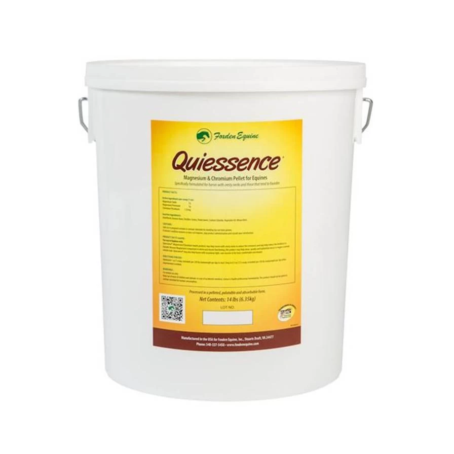 Quiessence® is a pelleted, palatable Magnesium and Chromium formula designed to support calm, balanced behavior in equines. It may help animals that are cresty-necked to reduce the crest, and may also help reduce the tendency to founder by supporting normal glucose metabolism and increasing peripheral circulation. Quiessence® is legal for competition with no known side effects.