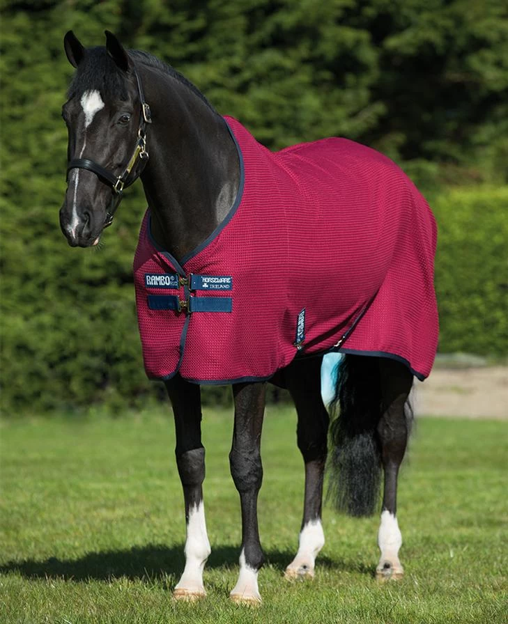 The latest in moisture management technology. The white fabric helps reflect the heat of the sun, while the waffle design with moisture management helps dry your horse quickly, and effectively wick away sweat. Double front closures, cross surcingles and fillet string as standard.