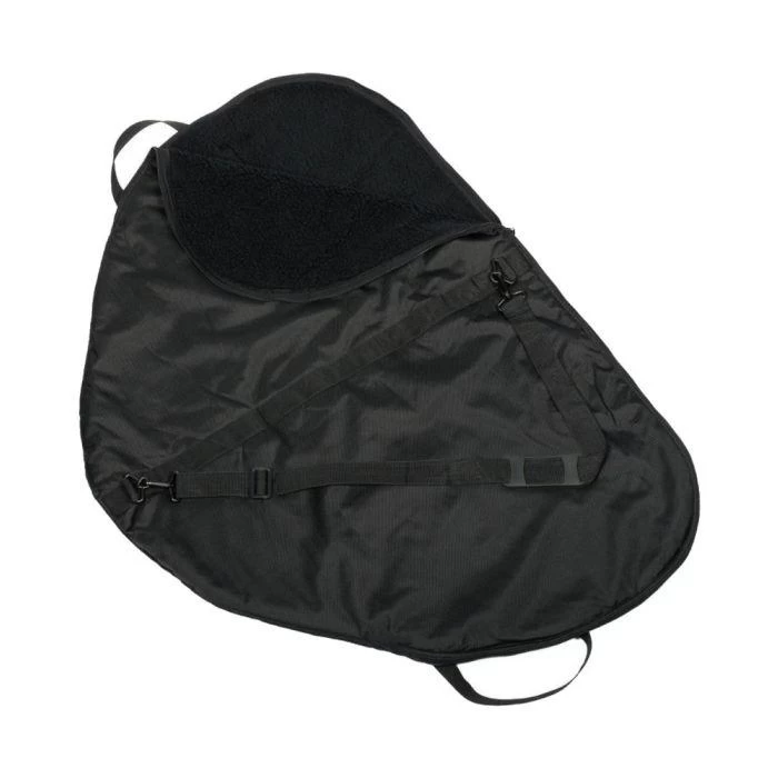 The Chestnut Bay Clam Shell Saddle Bag is the perfect travel companion for your jump or all-purpose saddle. The water-repellent shell keeps moisture off delicate leather while the quilted fleece lining ensures your saddle is safe from scuffs and scratches, especially during transit. A detachable shoulder strap and side handle make for easy carrying. The heavy-duty full zip clam shell design makes for easy use. Simply rest your saddle on the open bag on your saddle rack and zip it closed! Perfect for show tack stalls that can be more exposed to the elements than your barn tack room! Fits any jump, all-purpose, or event saddle.