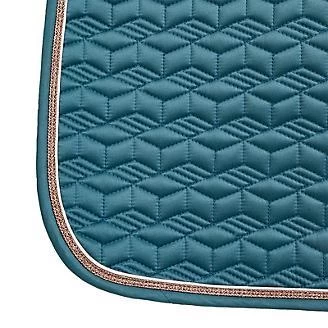 - Luxurious satin top with a unique geometric quilt pattern and shimmering metallic trim