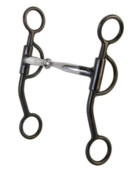 This black steel snaffle bit features a 5″ sweet iron mouth with copper inlay and 7″ cheeks. Recommended by Stacy Westfall.