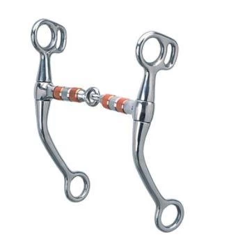 This stainless steel tom thumb snaffle bit features a 5″ stainless steel and copper roller mouth and 6-1/2″ cheeks.