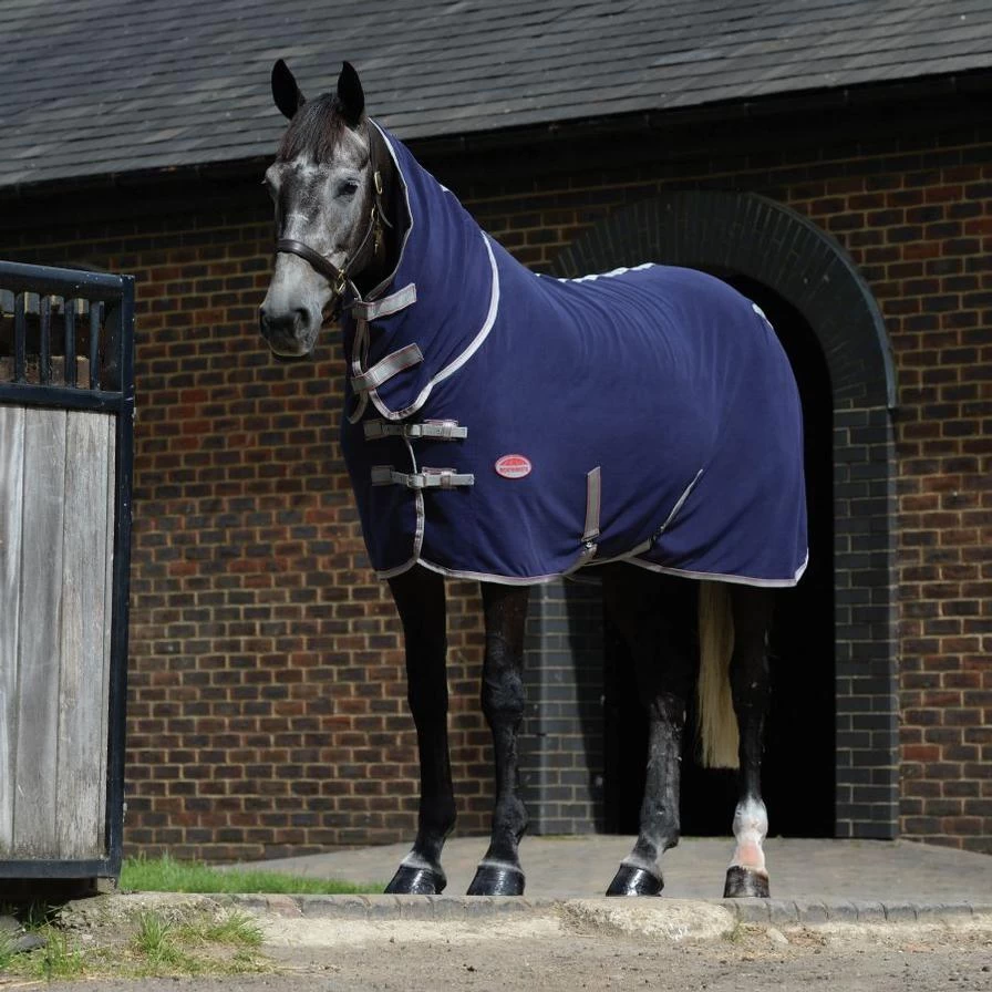 Lightweight anti-pill polyester fleece in a combo neck design, ideal for traveling or cooling after exercise. The WeatherBeeta Anti-Static Fleece Cooler Combo features anti-static technology which helps to prevent your horse from getting shocked from static electricity and includes wicking properties designed to draw excess moisture away from the horse’s body, keeping them warm and comfortable. The lined shoulders prevent rubbing, with twin adjustable buckle front closure with touch tape, touch tape closures on the neck, low cross surcingles and tail cord.