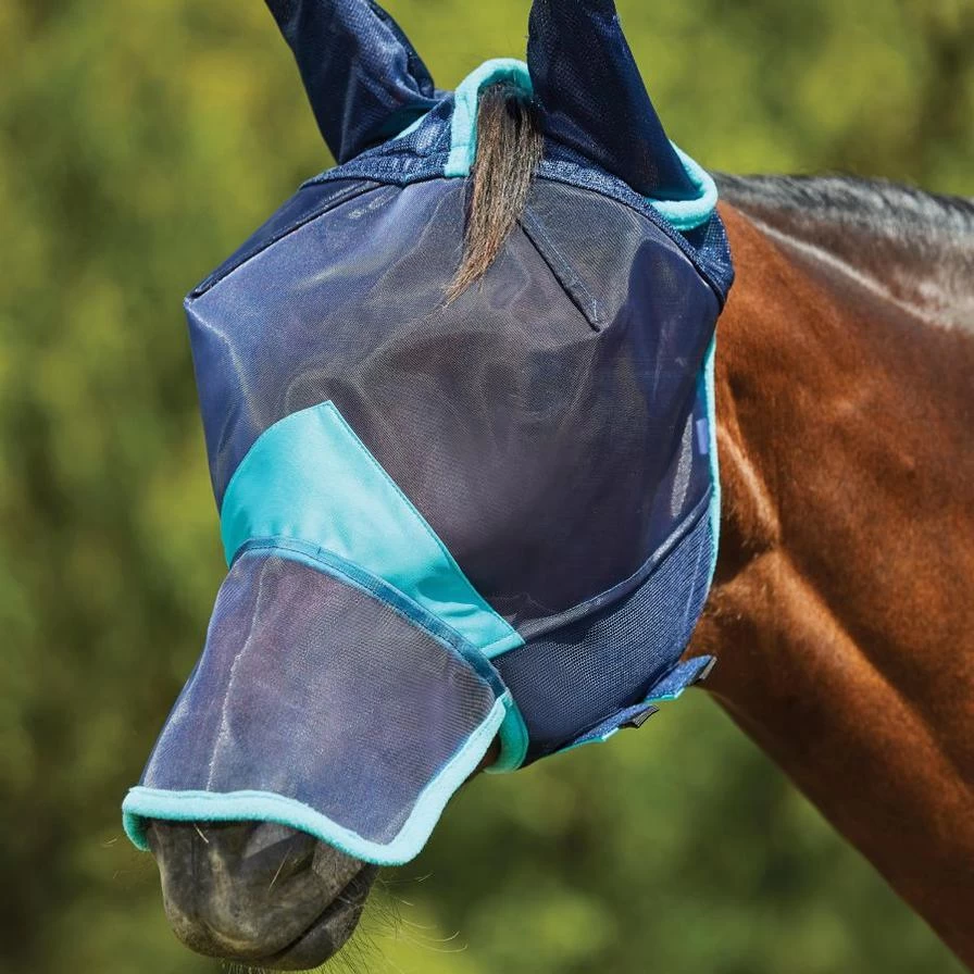 Designed with vision, comfort and durability in mind with ear and nose coverage. Fine mesh allows for full vision and protection from smaller insects with double darts for a superb fit and adjustable double touch tape tabs for ease of use. Soft fleece binding and hole to pull forelock through for additional comfort with stretch fleece poll for a secure and comfortable fit. Air stream ear design to allow air flow and extended nose for extra protection. Offering 60%+ UV Block.