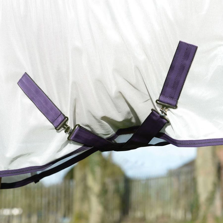 Classic style at a great price with a soft but durable mesh for protection. The WeatherBeeta ComFiTec Essential Mesh II Standard Neck offers softmesh fly protection, that’s breathable and cool with 65% UV block. Featuring 210T nylon lining at the shoulders, mane and tail, traditional side gusset for natural movement, twin adjustable buckle front closure with touch tape and low cross surcingles, plus a large tail flap and adjustable, removable web leg straps.
