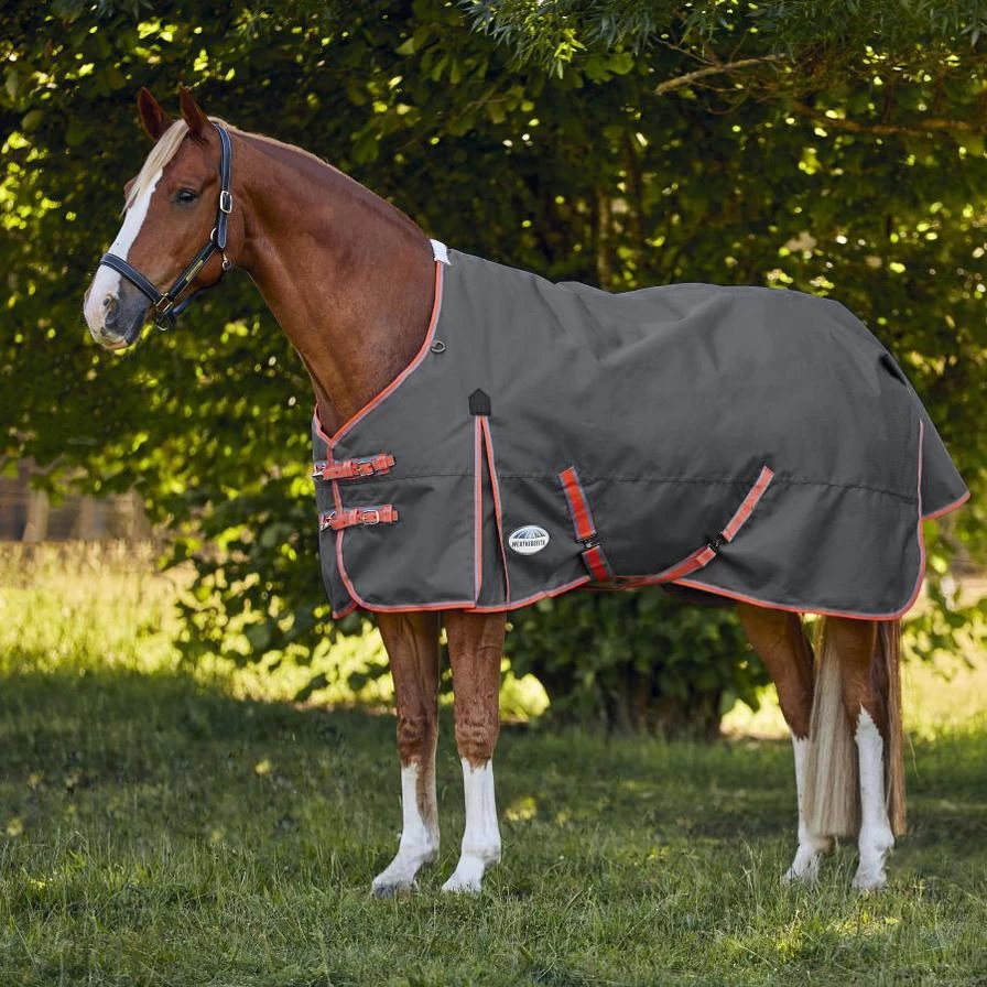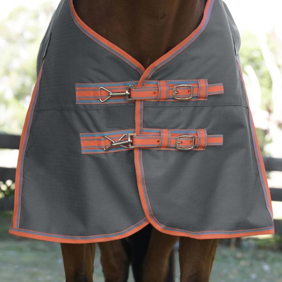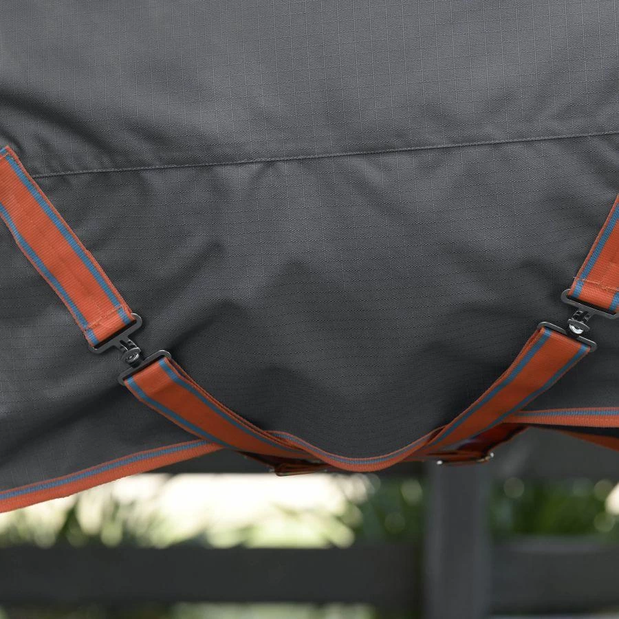 Strong classic style and protection at a great price. The WeatherBeeta ComFiTec Essential Plus Standard Neck Lite features a strong and durable 1200 denier ripstop outer shell with Guard-Tec coating that is both waterproof and breathable with 0g of polyfill. It features a 210T strong and durable lining that’s smooth providing less friction and rubbing of the coat while enhancing shine with antibacterial properties which assist to ensure it doesn’t absorb sweat and moisture, traditional side gusset for natural movement, and a customizable front with the option of quick clip front closure offering maximum adjustability or the ability to remove the quick clip and only use the traditional buckle closure. In addition, there are adjustable & removable leg straps, twin low cross surcingles, and large tail flap for optimum protection. Hydrostatic pressure tested to 2000mm plus. Moisture vapor tested to 3000g/m2 plus.