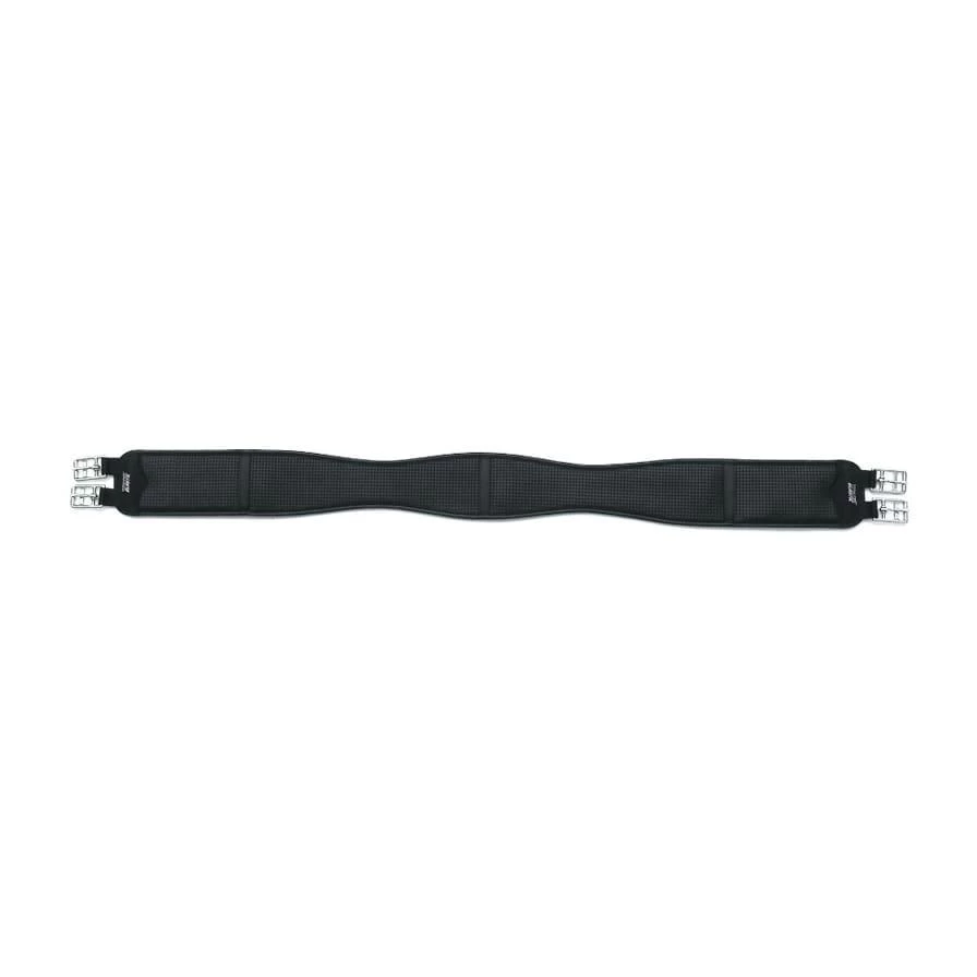 This girth has all the advantages of the original elastic girth but with the addition of a curved shape, which reduces the width of material behind the horse’s elbows helping to prevent pinching of the horse’s skin.