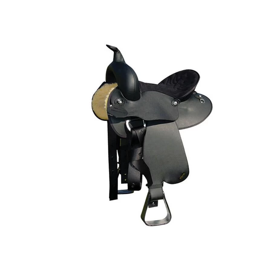 Durable synthetic leather makes clean up a snap, Equi-Suede, Extra foam padded stitched seat, Rounded skirt